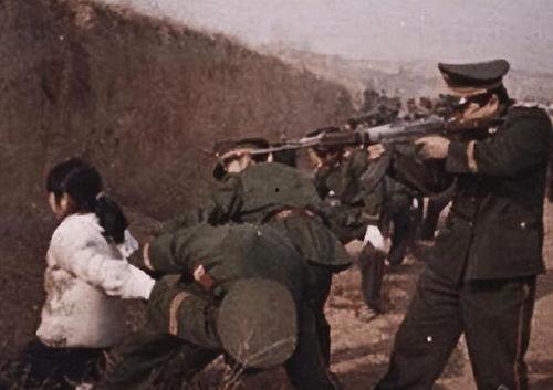 视频中,女犯被押解到刑场,周围围满了围观群众。随着一声令下,执行人员举起了手中的枪,女犯瞬间倒地。这一幕被镜头捕捉得淋漓尽致,让人触目惊心。